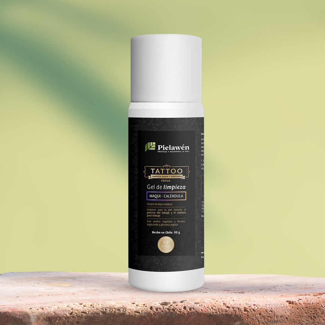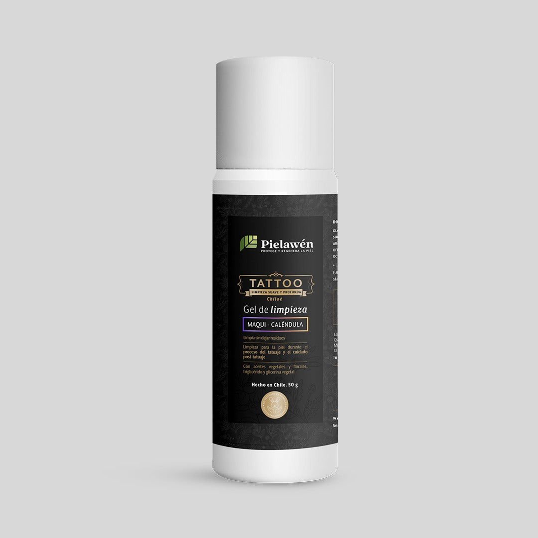 Gel de limpieza para el proceso del tatuaje y el cuidado especializado de la piel post-tatuada, con efecto dérmico anti-polución, pro-regenerador y anti-inflamatorio.